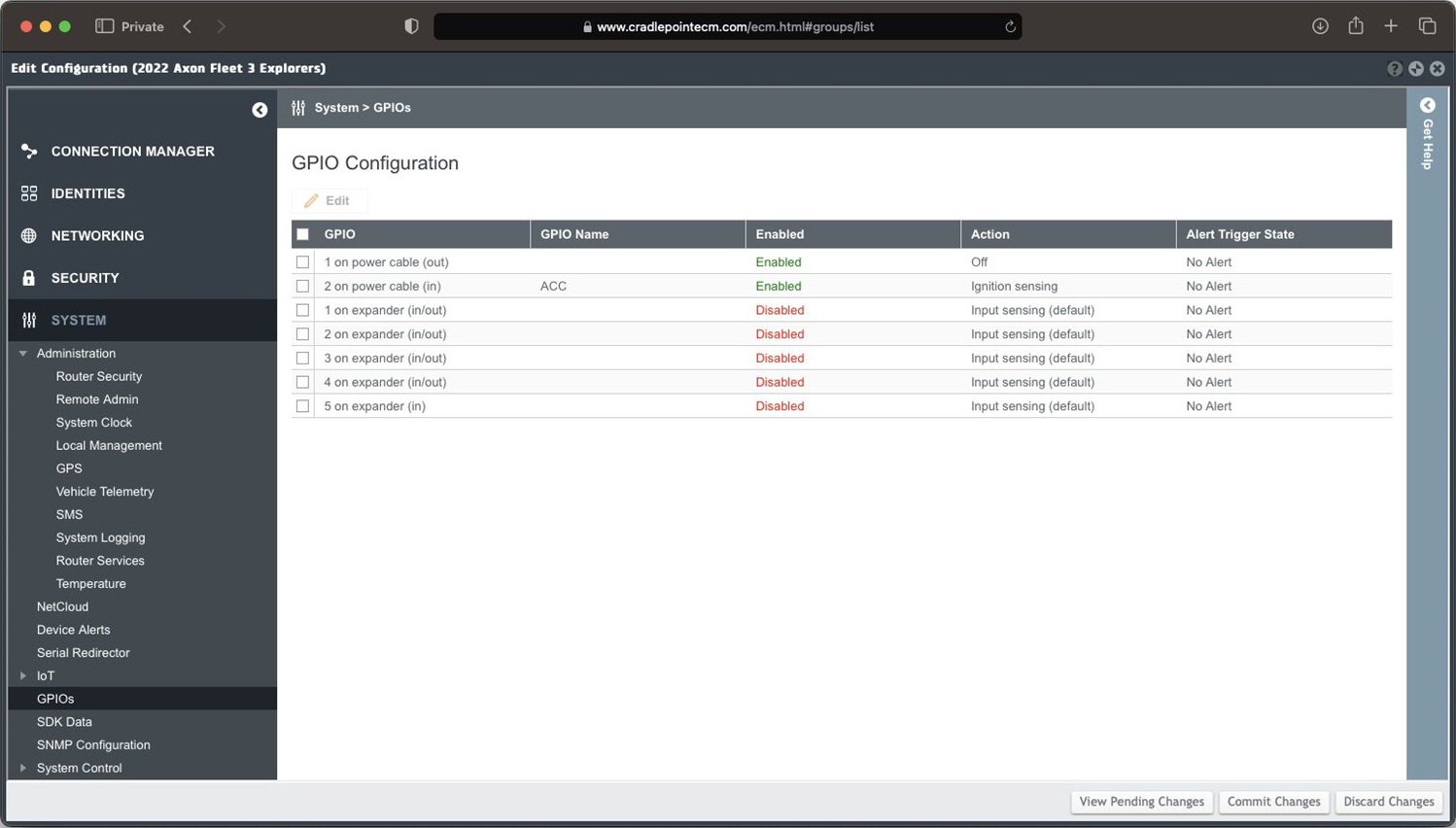 - In the left-nav, select System > GPIOs.