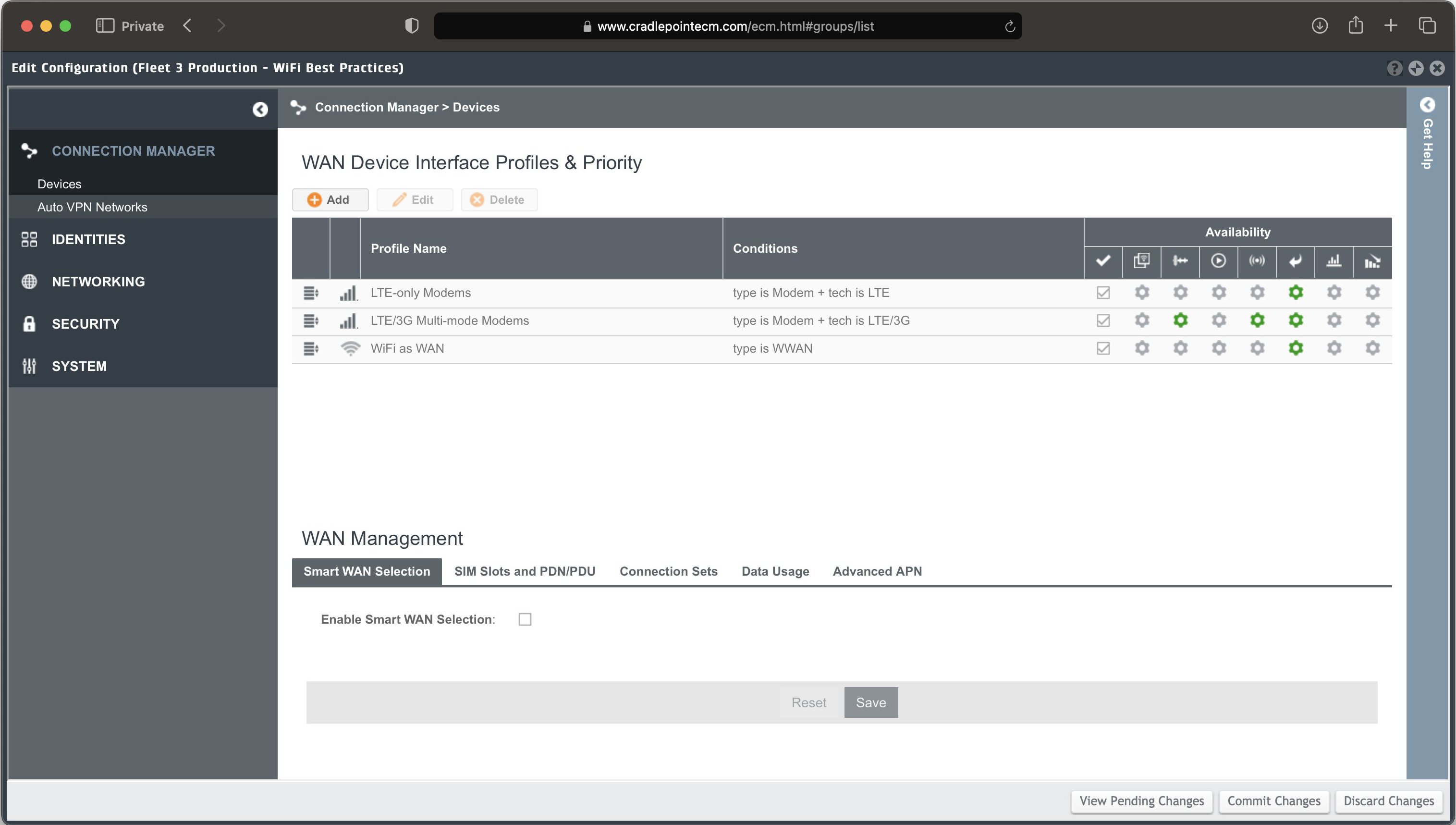 - In the left-nav, select Connection Manager > Devices.