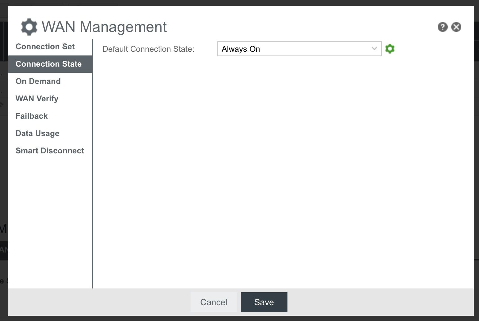 - For LTE/3G Multi-mode Modems, select the second gear from left to open WAN Management.