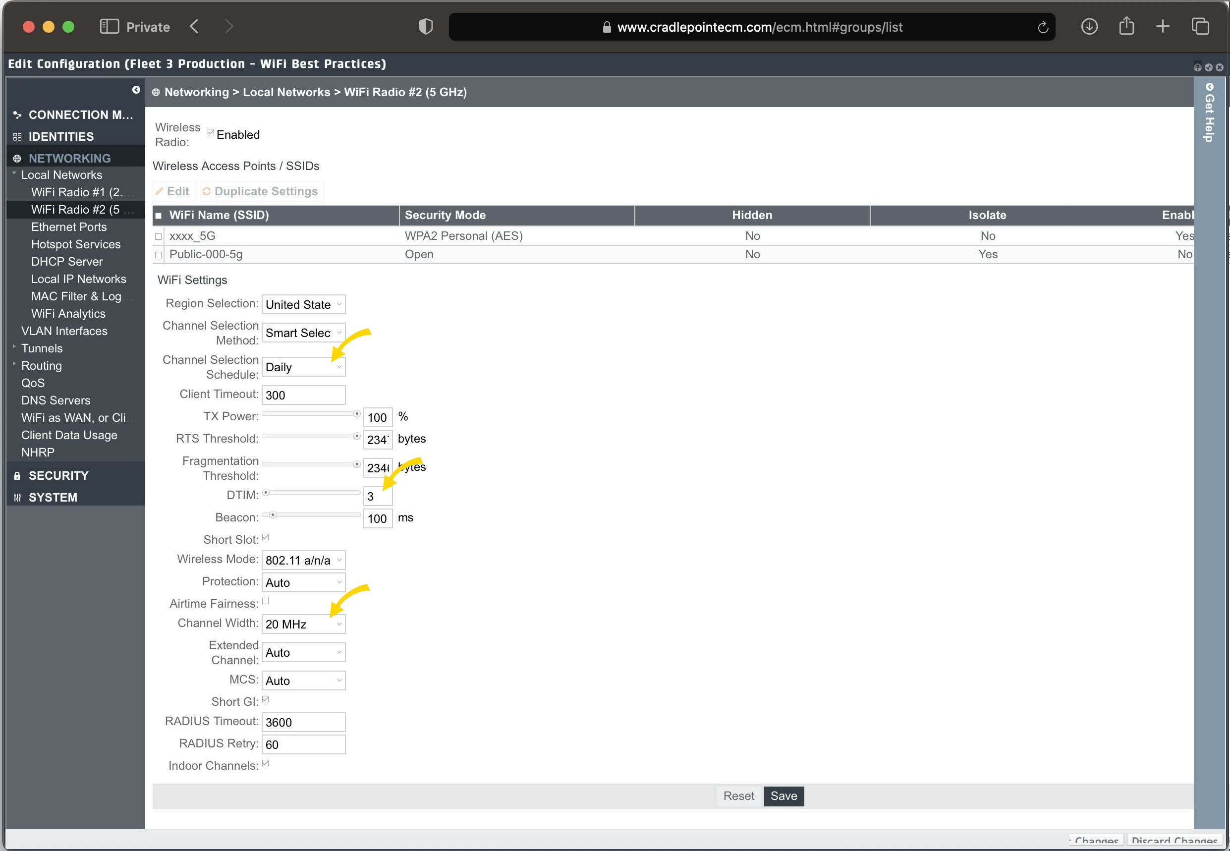 - In the left-nav, select Networking > Local Networks > Wi-Fi Radio #2 (5 GHz).