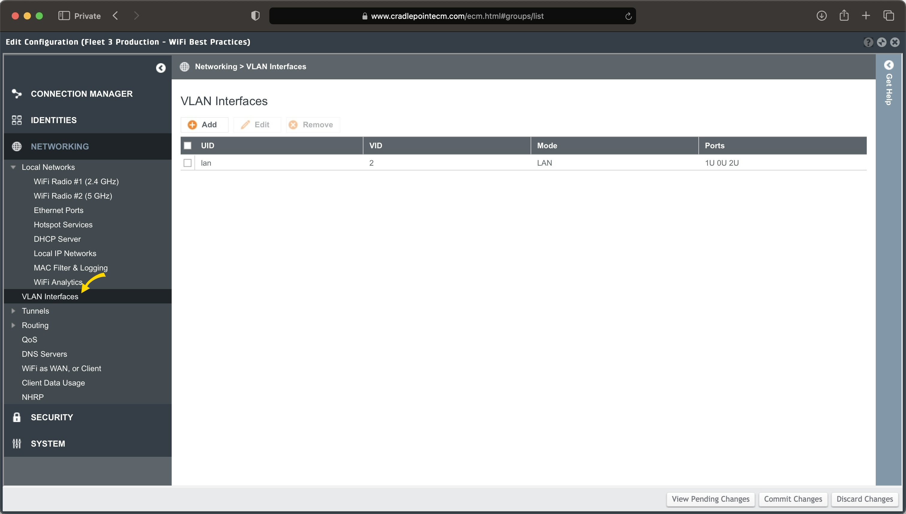 - In the left-nav, select Networking > VLAN Interfaces.