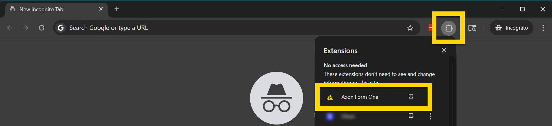 - Select the puzzle icon to the right of the URL bar.