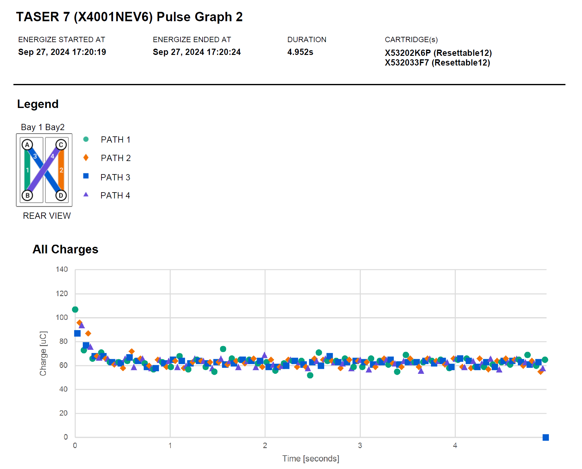 TASER logs or evidence reports now include high-fidelity charts, pulse graphs, that represent the underlying electrical activity for each discharge as well as the logged events, closely matching what is available today in Evidence.com. - Improved handling of complex usage scenarios