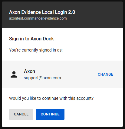 Axon Evidence Local 5.8 also enables Universal Login as well as adding new capabilities for agencies using Axon docks for TASER and AB2/Flex2, bringing them in line with the modern authentication experience already used by other Axon services and applications. This feature requires Axon Dock firmware v3.22 which will be included in the Axon Server Manager for this version, so all registered docks will be automatically updated.
