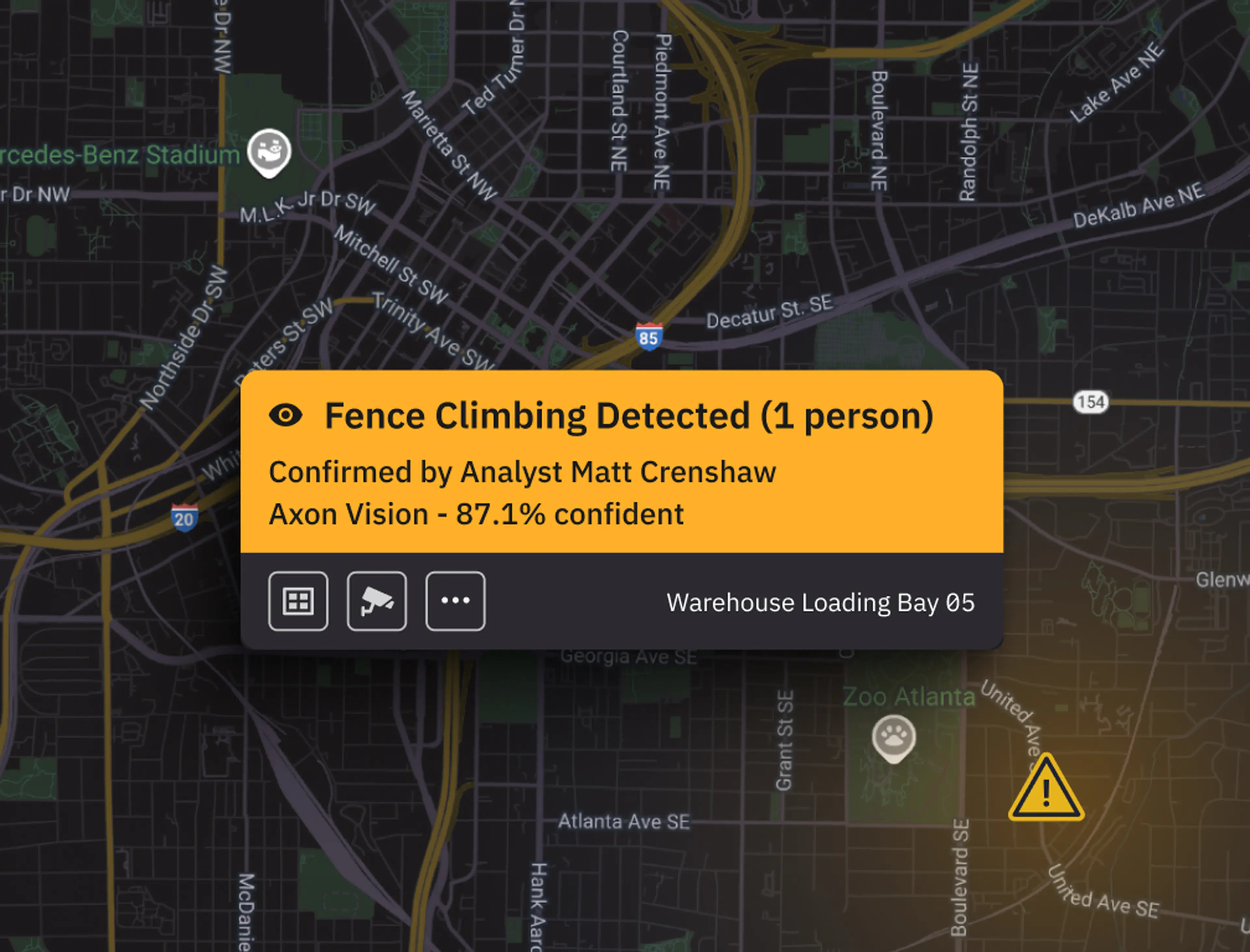 Axon Vision operates inside Fusus, the real-time operations platform, so alerts appear directly within operational workflows. There is no separate system or console to manage. When incidents require follow-on investigation, relevant video and context flow directly into Axon Evidence.