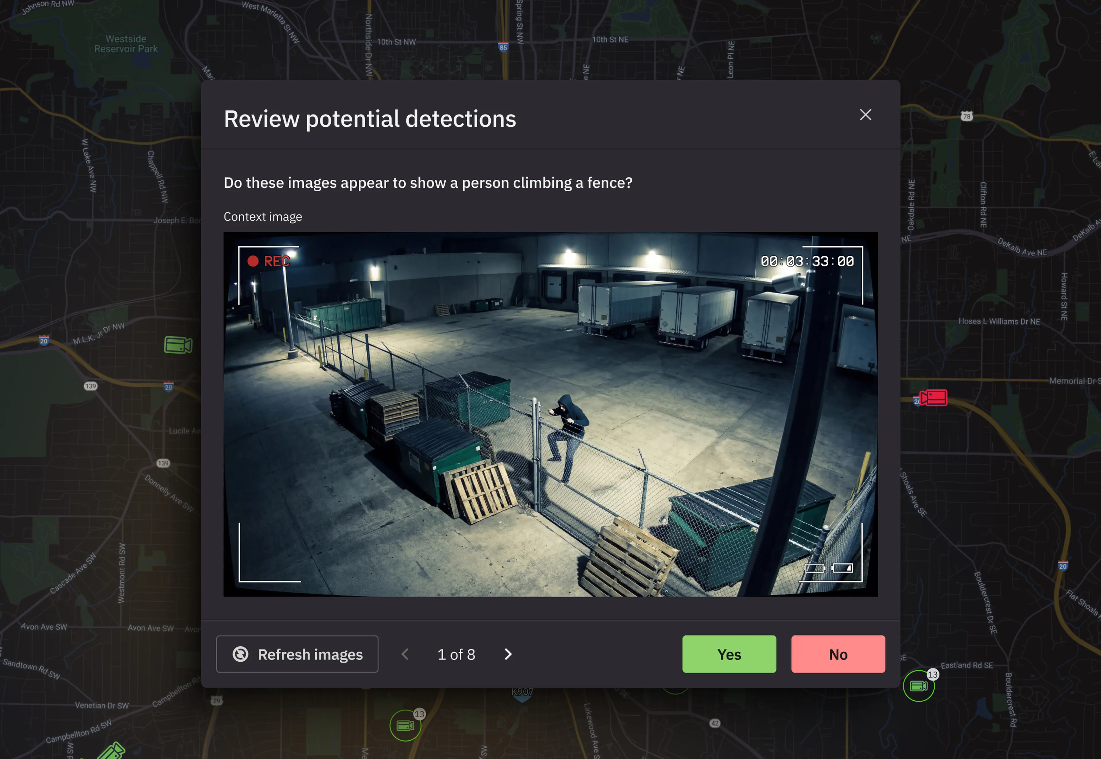 When the system is less certain about what it detects, events escalate to trained human reviewers before operational teams are notified. This review step helps ensure alerts are verified before reaching the field.