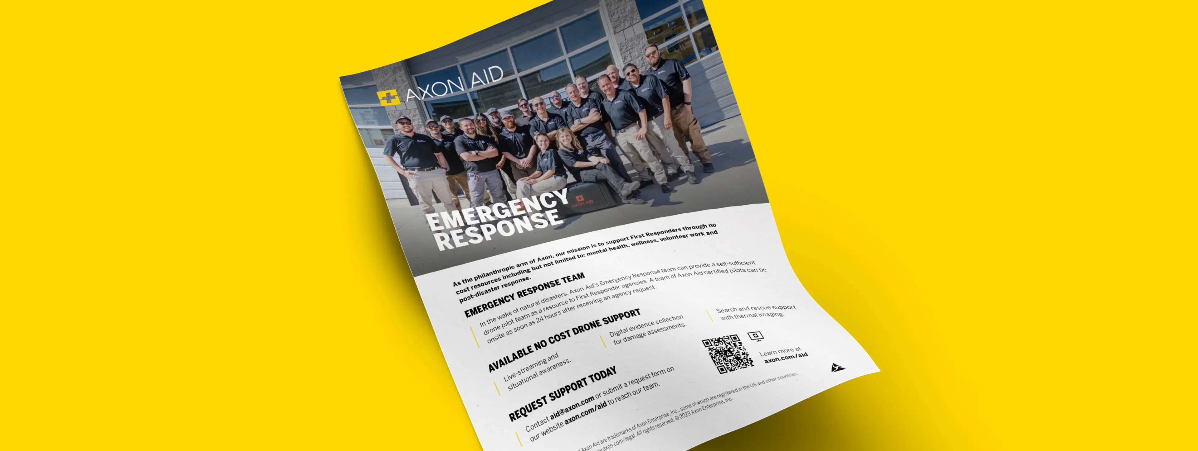 As the philanthropic arm of Axon, our mission is to support 1st Responders through no cost resources including but not limited to: mental health, wellness, volunteer work and post-disaster response.